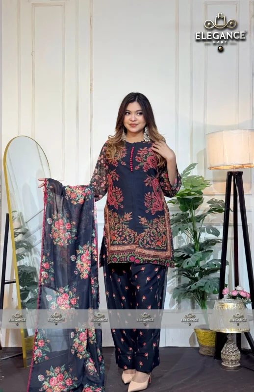 Premium Black Crepe georgette Digital Printed Salwar Kameez & Dupatta